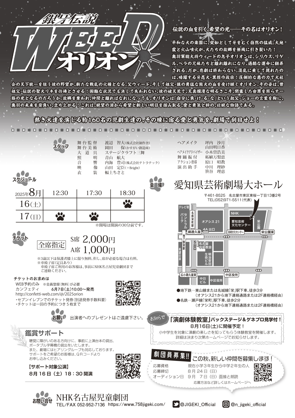 【公演終了】2025年NHK名古屋児童劇団公演「銀牙伝説WEEDオリオン」《協力公演》