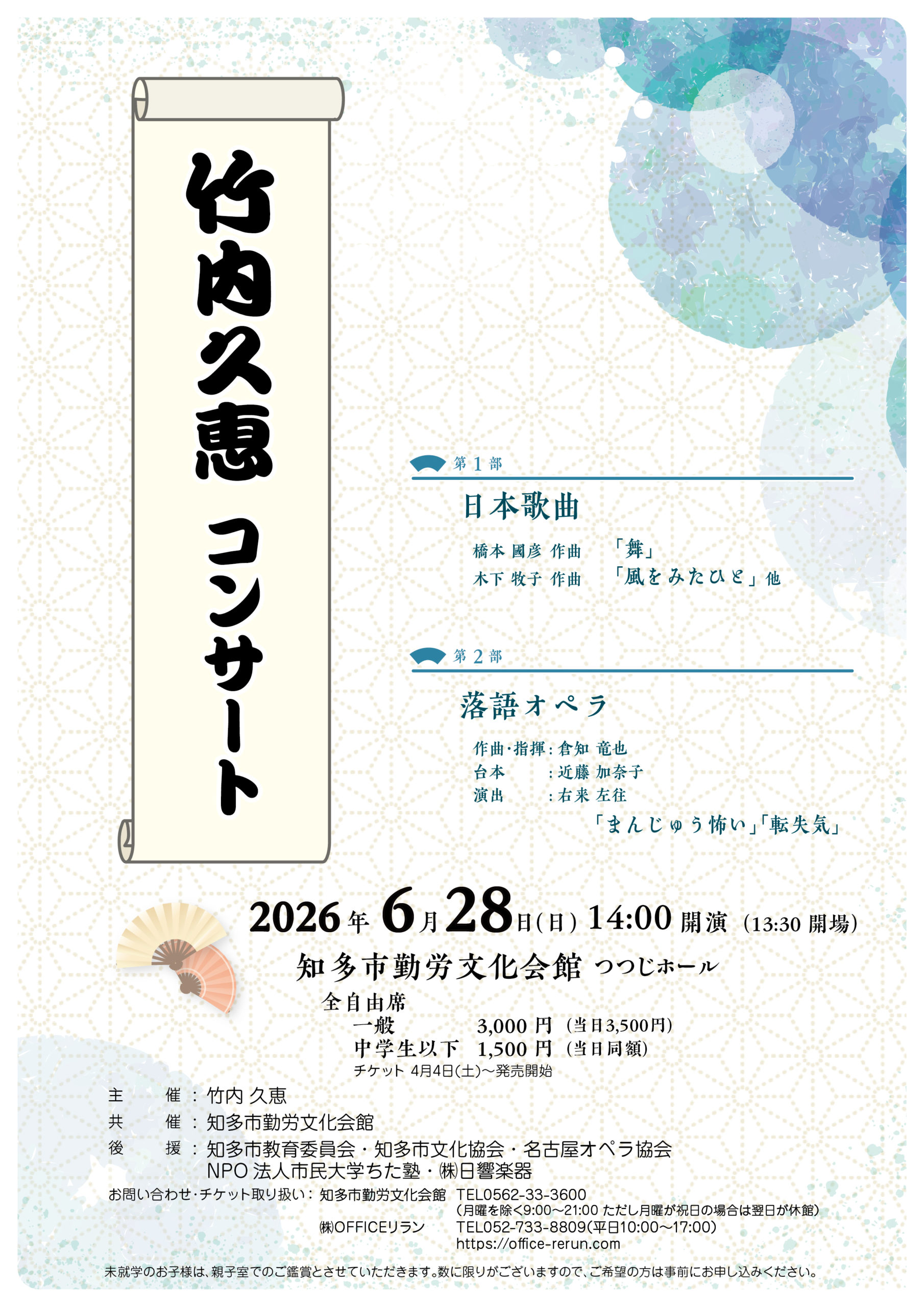 後援/知多市教育委員会、知多市文化協会、名古屋オペラ協会、NPO法人市民大学ちた塾、(株)日響楽器